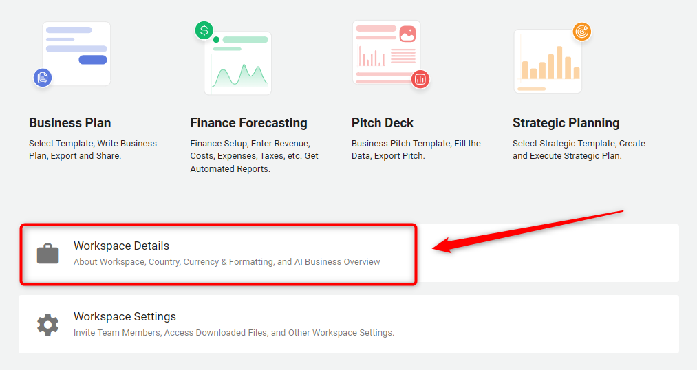 Once you've updated the necessary information, you're all set to move forward with your AI-assisted Business Plan creation.