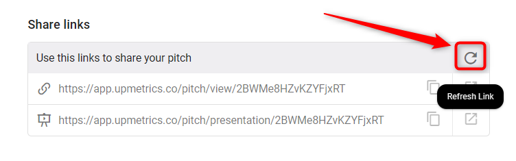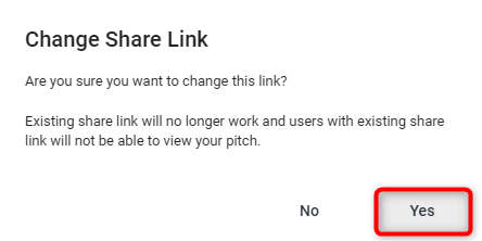 By using this option, you can generate a new link for your pitch deck, making the existing share link obsolete. This ensures that anyone with the old link will no longer be able to view your pitch, providing an extra layer of security and control over your presentation's accessibility.