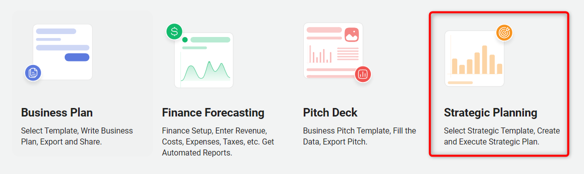Go to the "Strategic Planning" module within your workspace menu. If you haven't finished setting up your strategic model, click here to complete the process.