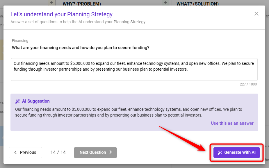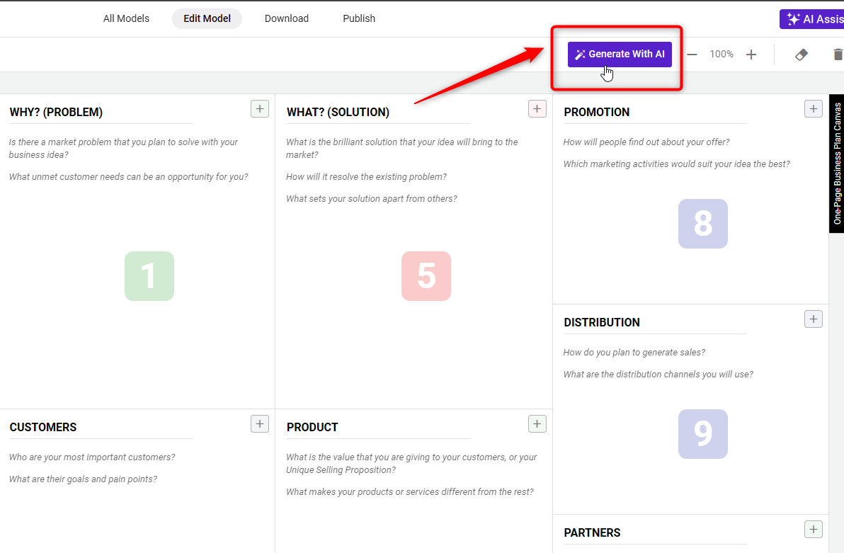 These steps provide a straightforward guide to effectively using the AI Assistant feature to create a comprehensive and customized Strategic Planning Model.