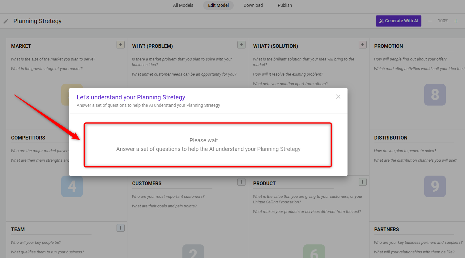 You will see a pop-up indicating that the AI is processing and generating your strategic model.