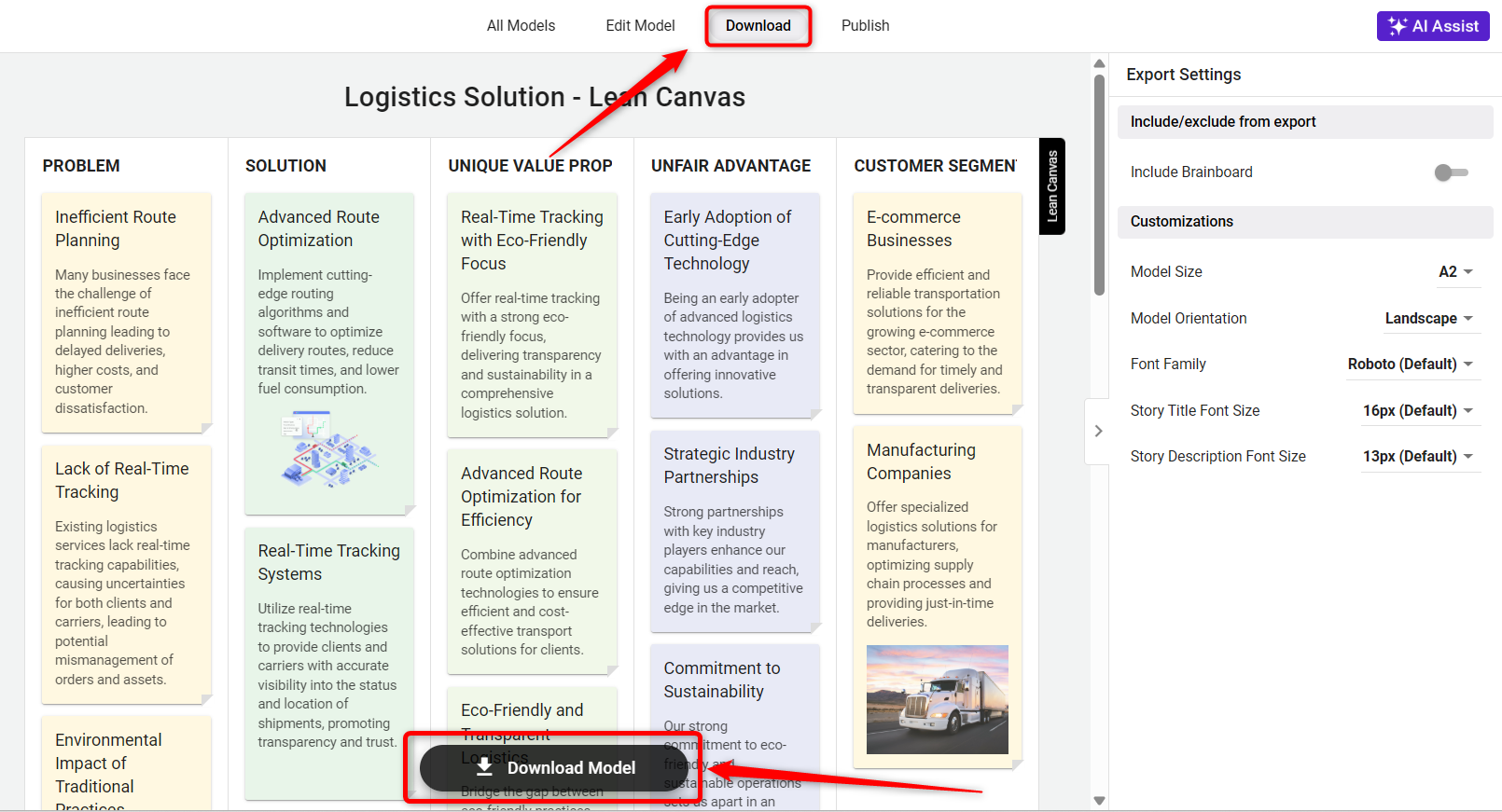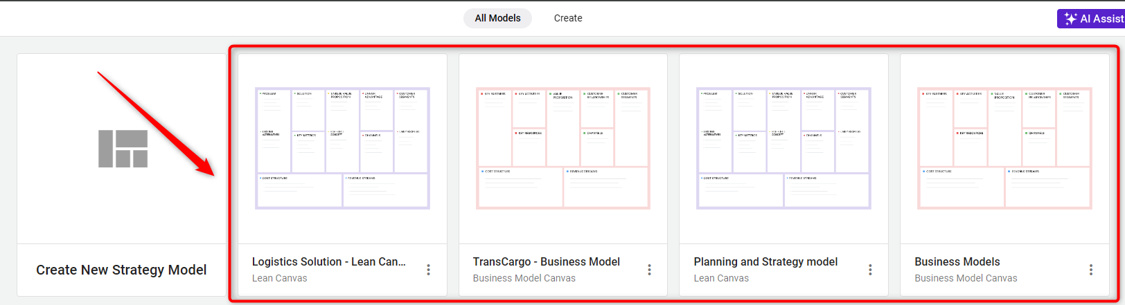 Within the module, you’ll see a list of the strategic models that you have created. Click on the specific model you wish to download.