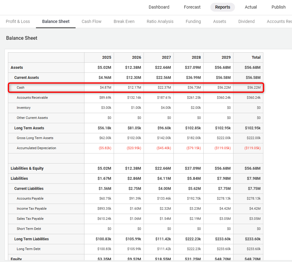 The cost of sales is calculated in the Balance Sheet and Cash Flow statement, but not explicitly. Instead, your cost of sales is used to calculate your available cash, which appears in the Assets portion of the Balance Sheet: