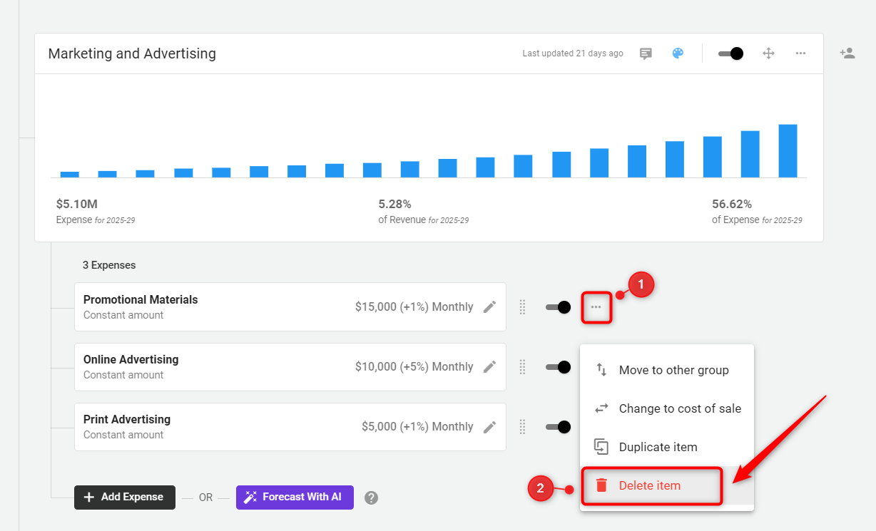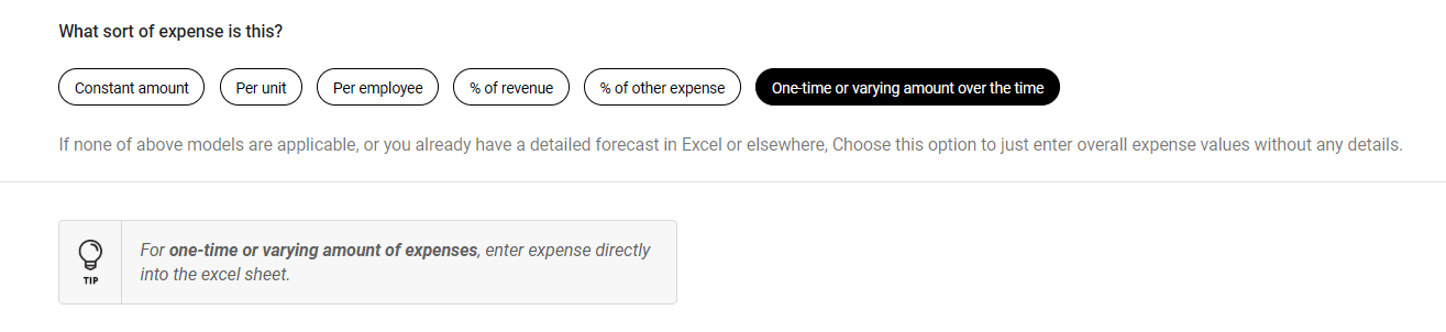 - Per Employee Expense is most effective when you're dealing with costs that inherently depend on the number of employees. This approach allows for a more accurate and scalable method of forecasting expenses as your workforce changes. i.e., Training and Development, Work Equipment, and Travel Allowances.