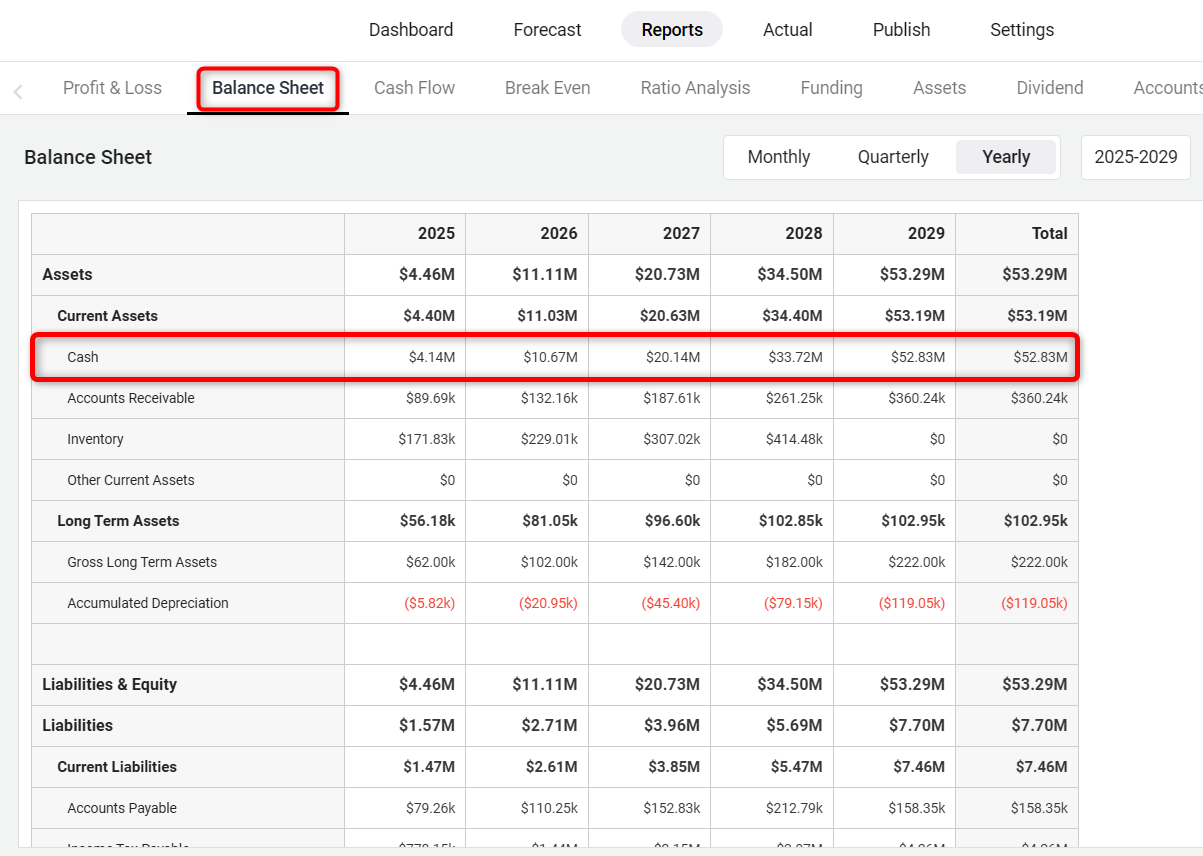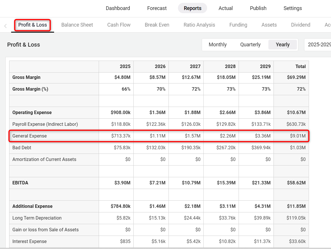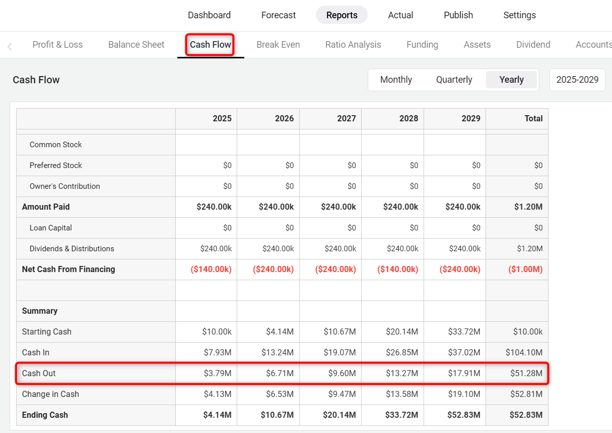 In the Cash Flow, your expense entries are calculated into the lines shown below: