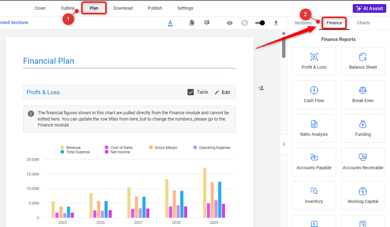 TIP: To add finance reports and charts to your business plan, check out this help guide.