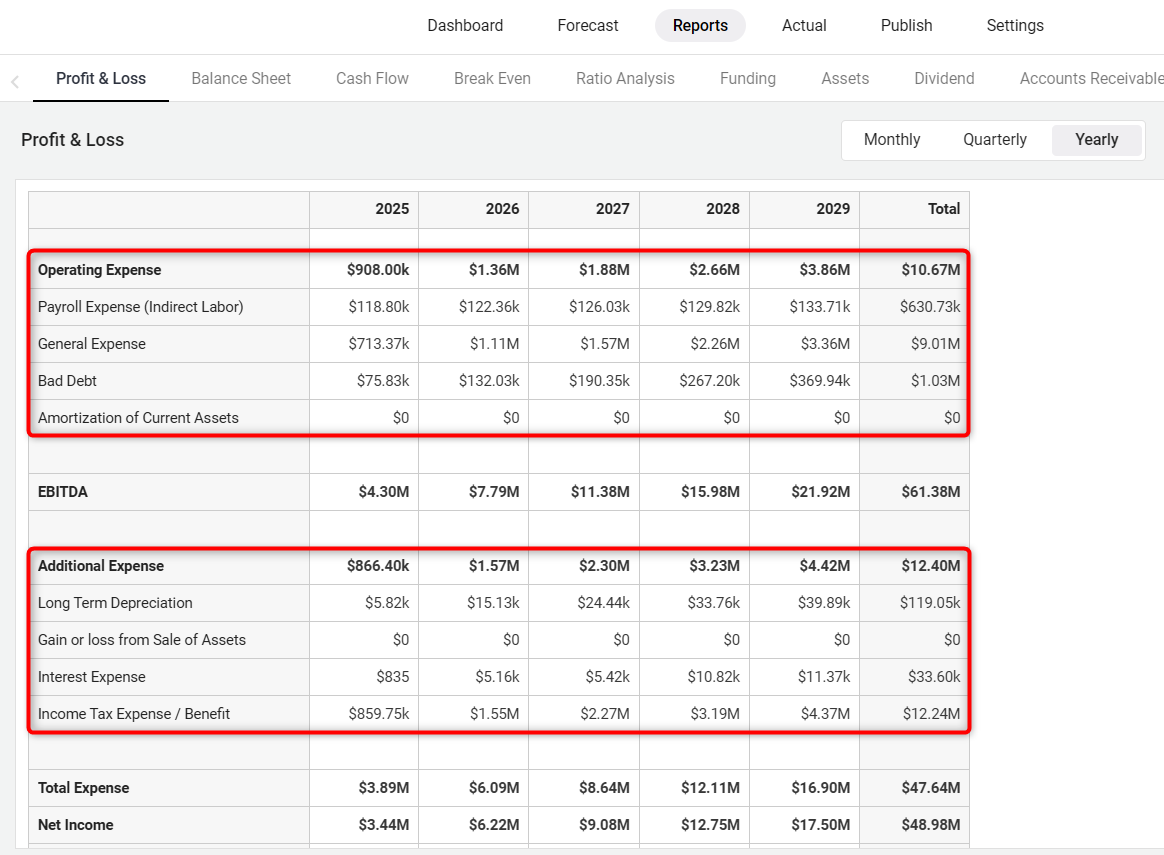 In the same Profit and Loss statement, you can see the expenses calculated in the Operating Expenses section: