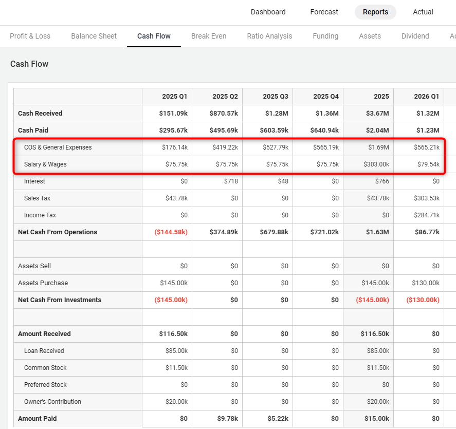 In the Cash Flow statement, your personnel entries are calculated into the lines below: