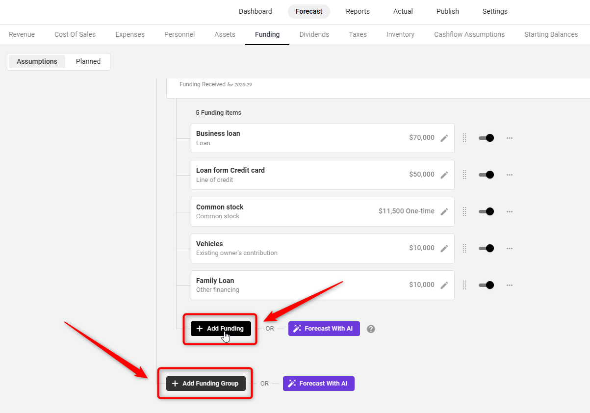 By following these steps, you can effectively add and manage founder and shareholder equity within your business plan, ensuring your financial forecasts are comprehensive and reflective of your business’s capital structure.