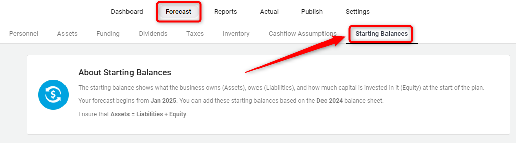 In the 'Forecast' section, find and click on the 'Starting Balances' option.