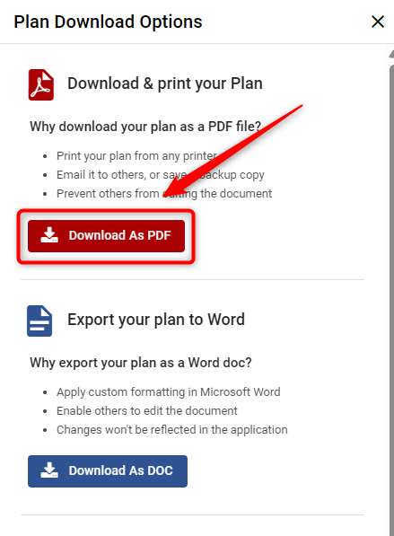 TIP: If you are using an iPad or other mobile device, you may not be able to download a PDF directly to it. Instead, use a desktop or laptop to download your plan.