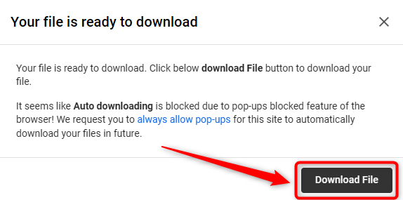 In the overlay that appears, you'll see the download in progress. Wait for completing all three document downloading steps. You may get a pop-up prompting you to click on the Download File button.