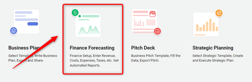 In the workspace menu, locate and open the Finance Forecasting module.