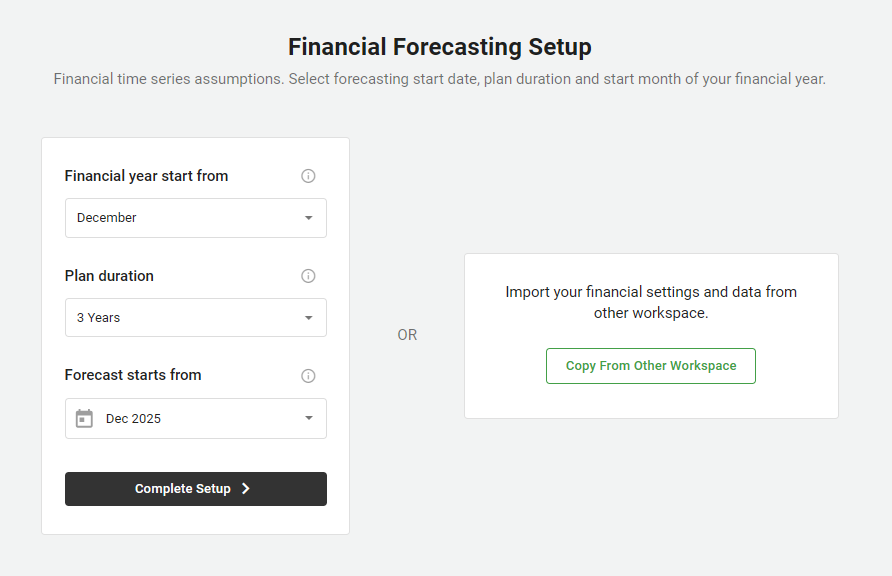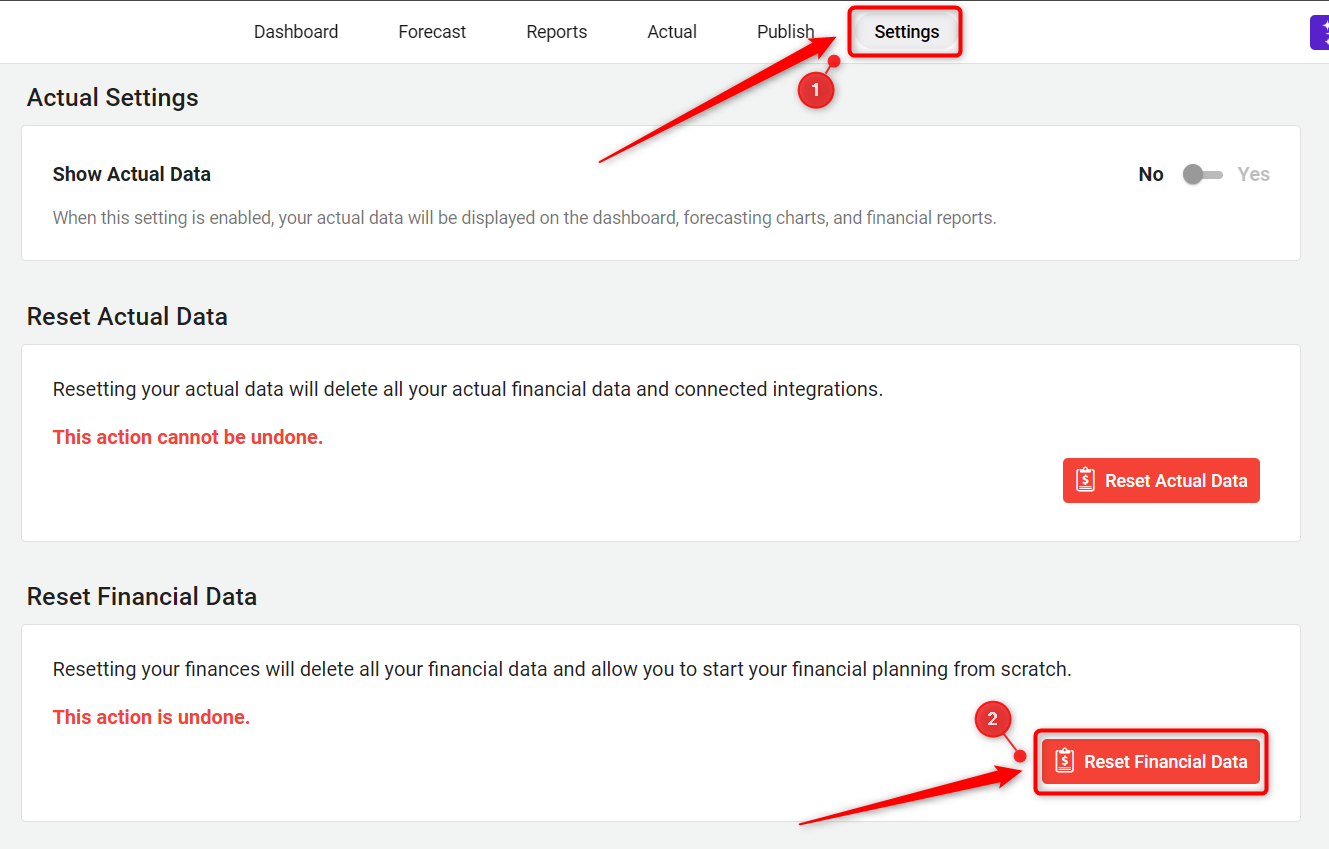 Following the reset, you'll be redirected to the Financial Forecasting Setup page to reconfigure your financial projections.