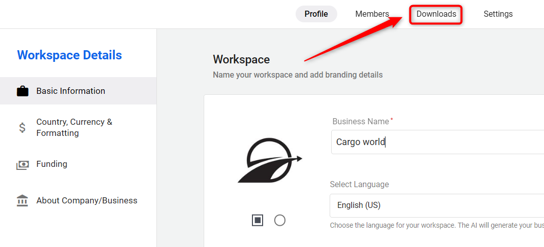 Within the workspace settings, locate and select the "Downloads" option. This will take you to the section dedicated to his feature helps you keep a