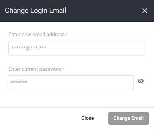 Enter your new email address in the provided field. You are required to confirm this change by entering your current password for security purposes.