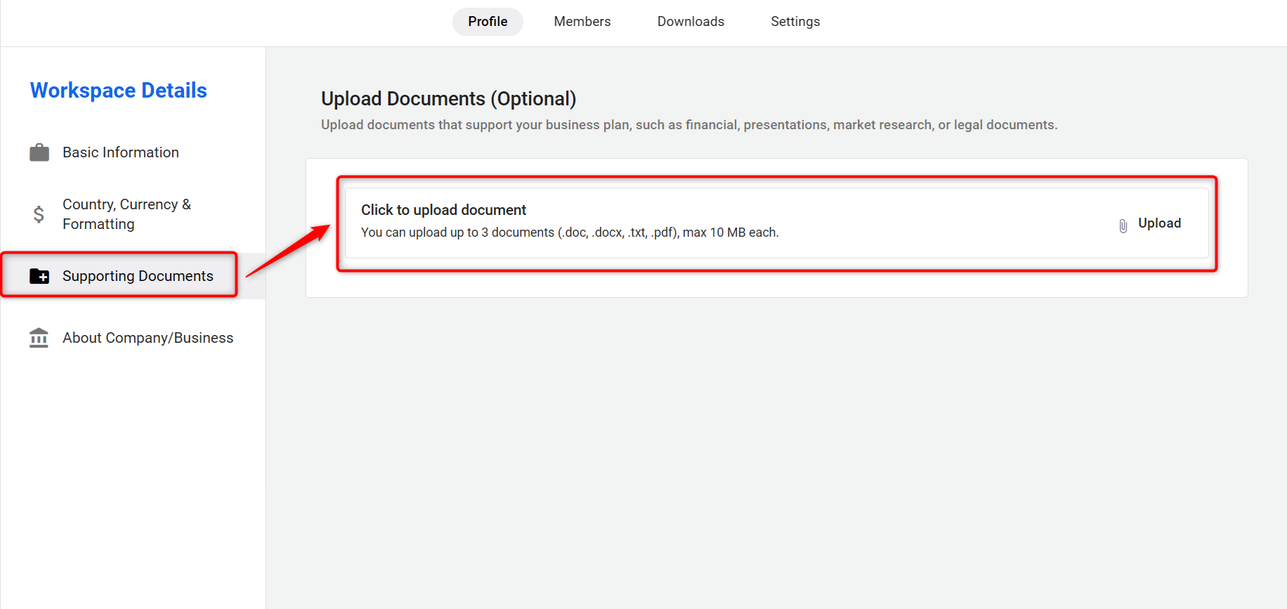 In the Supporting Document section, You can attach supporting documents to provide more insights about your business, which helps the AI generate a more accurate and tailored business plan.